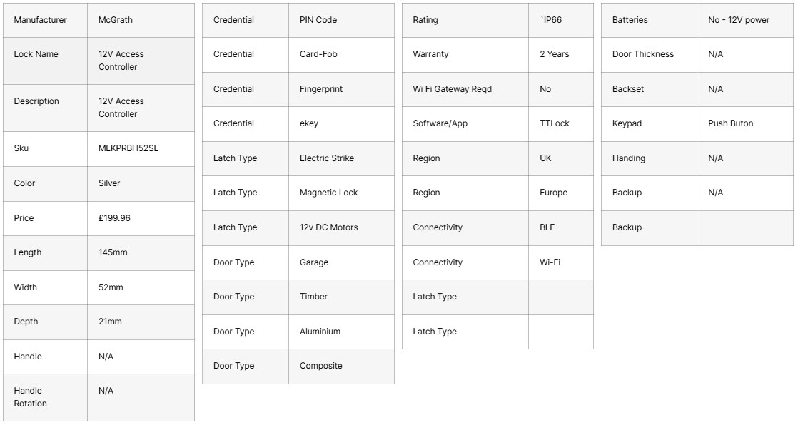 Pro McGrath 12V Takkaborð TTlock IP66